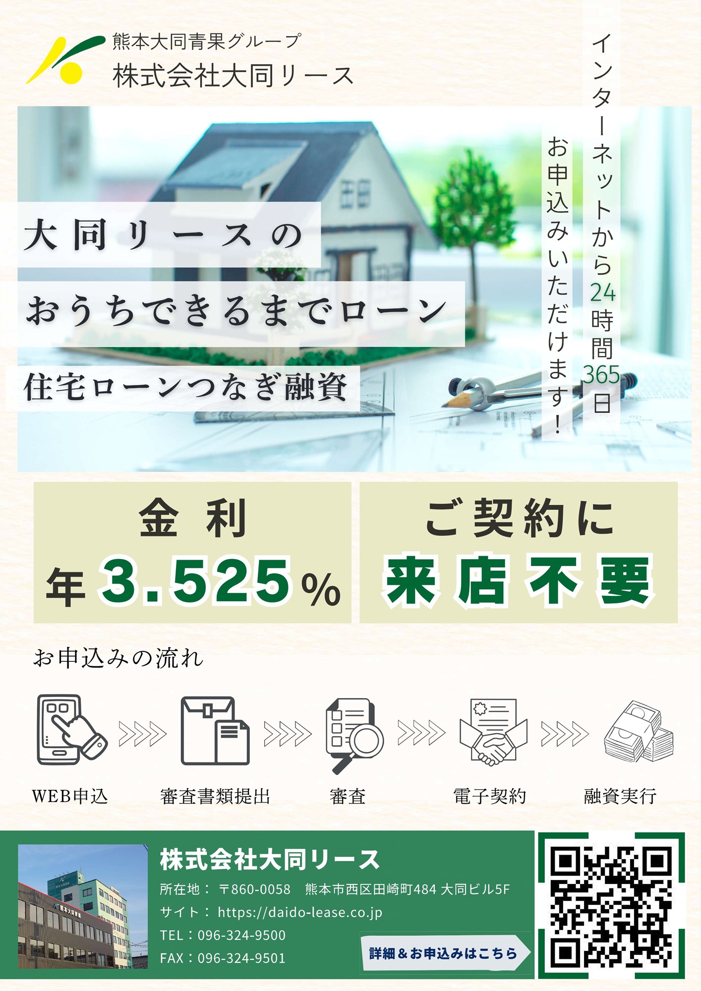 | 資金使途 | 土地決済資金及び諸費用、建築着工金、中間金 ※最大3回までの分割融資 |